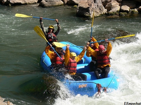 - Tutta l’attrezzatura per il rafting, come casco, giubbotto di salvataggio, pagaia, gommone autosvuotante